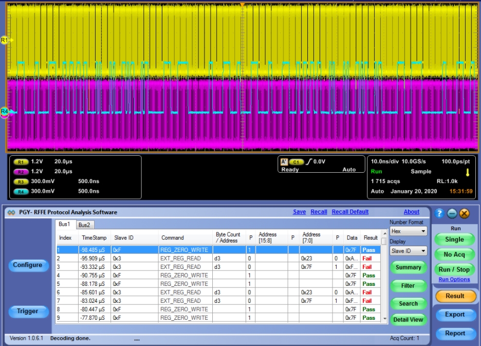 Oscilloscope Based Protocol Decode Software Prodigy 프로토콜 소프트웨어는 텍트로닉스 5/6 시리즈 MSO 및 DPO/MSO5000, DPO7000, DPO/DSA/MSO70000 오실로스코프와 호환됩니다 Storage eMMC and SD(UHS-I) Electrical Validation and Protocol Decode Software [자세히 보기] ONFI(Open NAND Flash Interface) Electrical Timing Analysis Software [자세히 보기] QSPI(Quad SPI) Electrical Validation and Protocol Decode Software [자세히 보기] MIPI-UFS/UniPRO/LLI Electrical Validation and Protocol Decode Software [자세히 보기] Automotive 100Base-T1 Automotive Ethernet Protocol Decode Software [자세히 보기] FlexRay Protocol Decode and SI Analysis Software [자세히 보기] Mobile DigRF v4 Electrical Validation and Protocol Decode Software [자세히 보기] HSIC(High-Speed Inter-Chip) Protocol Trigger and Decode Analysis Software [자세히 보기] I3C(Improved Inter Integrated Circuit) Protocol Trigger and Decode Software [자세히 보기] RFFE(RF Front End) Protocol Trigger and Decode Analysis Software [자세히 보기] MIPI-SSIC Protocol Analysis Software [자세히 보기] Computer MHL/HDMI Protocol Analysis Software [자세히 보기] eSPI(Enhanced Serial Peripheral Interface Bus) Electrical Validation and Protocol Decode Software [자세히 보기] USB-PD Power Delivery (CC) Protocol Analysis Software [자세히 보기] USB 2.0 Protocol Decode Software [자세히 보기] USB 3.0 Protocol Decode Software [자세히 보기] USB 3.1 Protocol Decode Software [자세히 보기] Other I2C Electrical Validation and Protocol Decode Software [자세히 보기] I2S Electrical, Audio and Protocol Test Software [자세히 보기] IEEE 1149.1 JTAG Electrical Validation and Protocol Decode Software [자세히 보기] SPI(Serial Peripheral Interface) Electrical Validation and Protocol Decode Software [자세히 보기] UART/RS232C Electrical Validation and Protocol Decode Software [자세히 보기]
